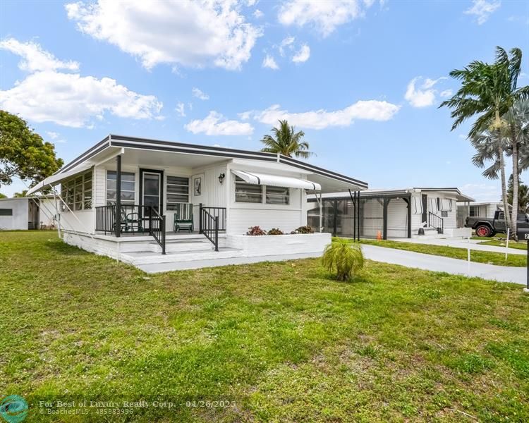 Furniture Negotiable Discover this lovely, well-maintained 2 bedroom 2 bathroom mobile home in the 55+ Park City Estates, where you OWN the land! Fully furnished and updated, it’s ready for you to move in—TURN KEY! The home features a large carport with storage shed and a washer/dryer, aluminum roof, updated kitchens, beautifully renovated bathrooms, ceramic tile and wood flooring, and newer AC and Water Heater. Conveniently located near the beach, highways, Broward Mall, Sawgrass Mills, colleges, hospitals, and public transport. Don’t miss this chance to own your own land and make this charming home your very own! The house can be sold all furnished.