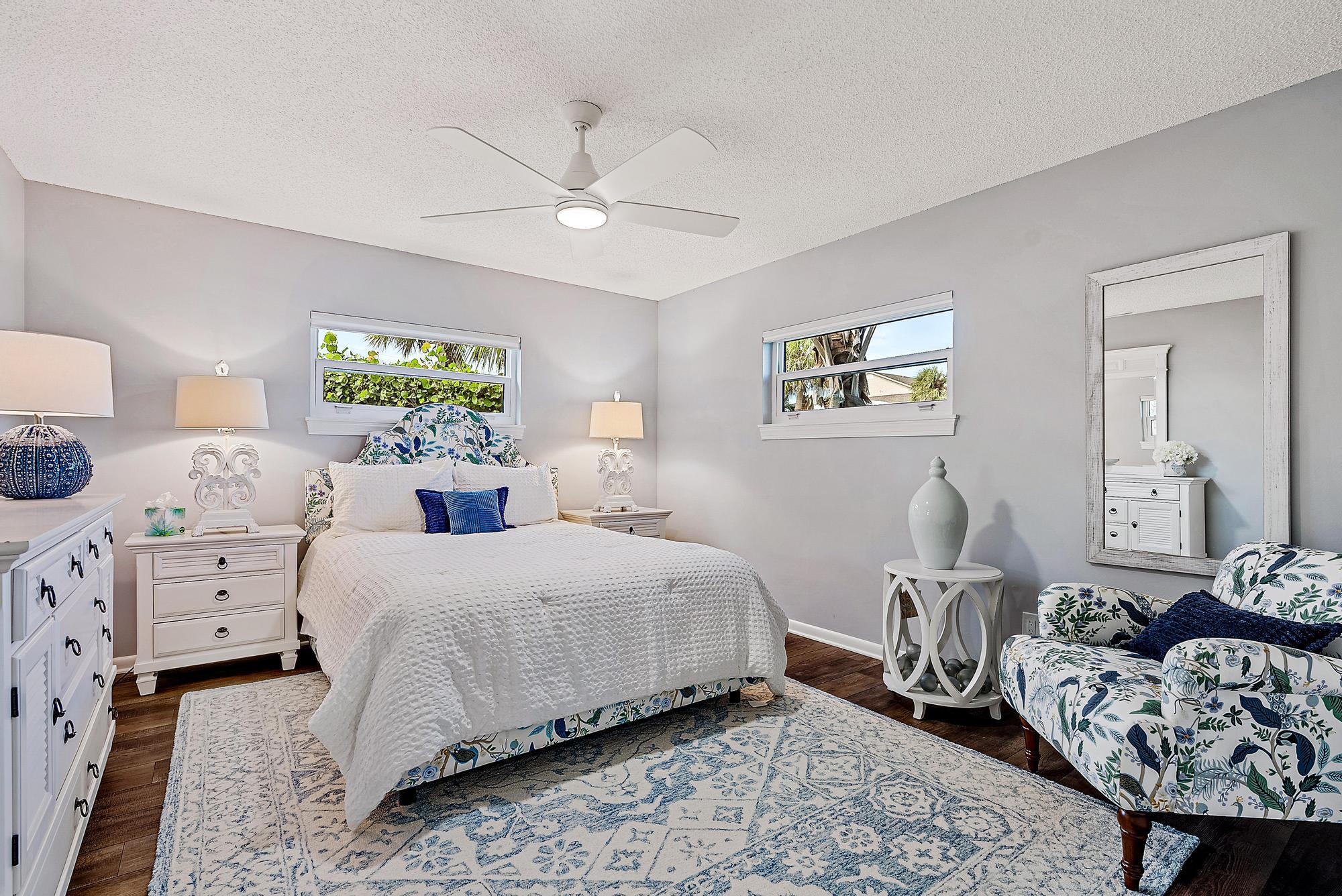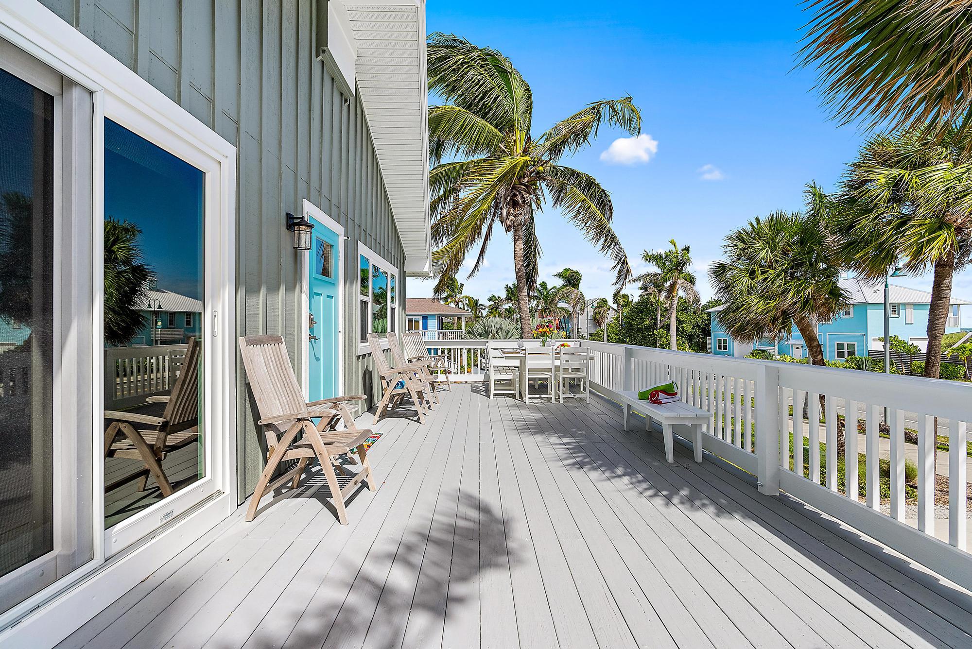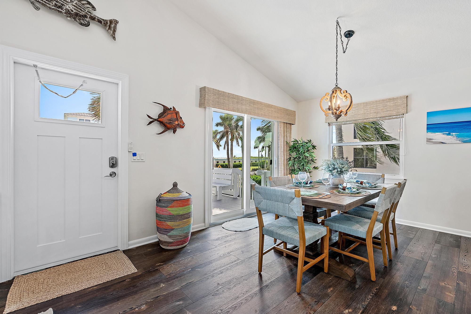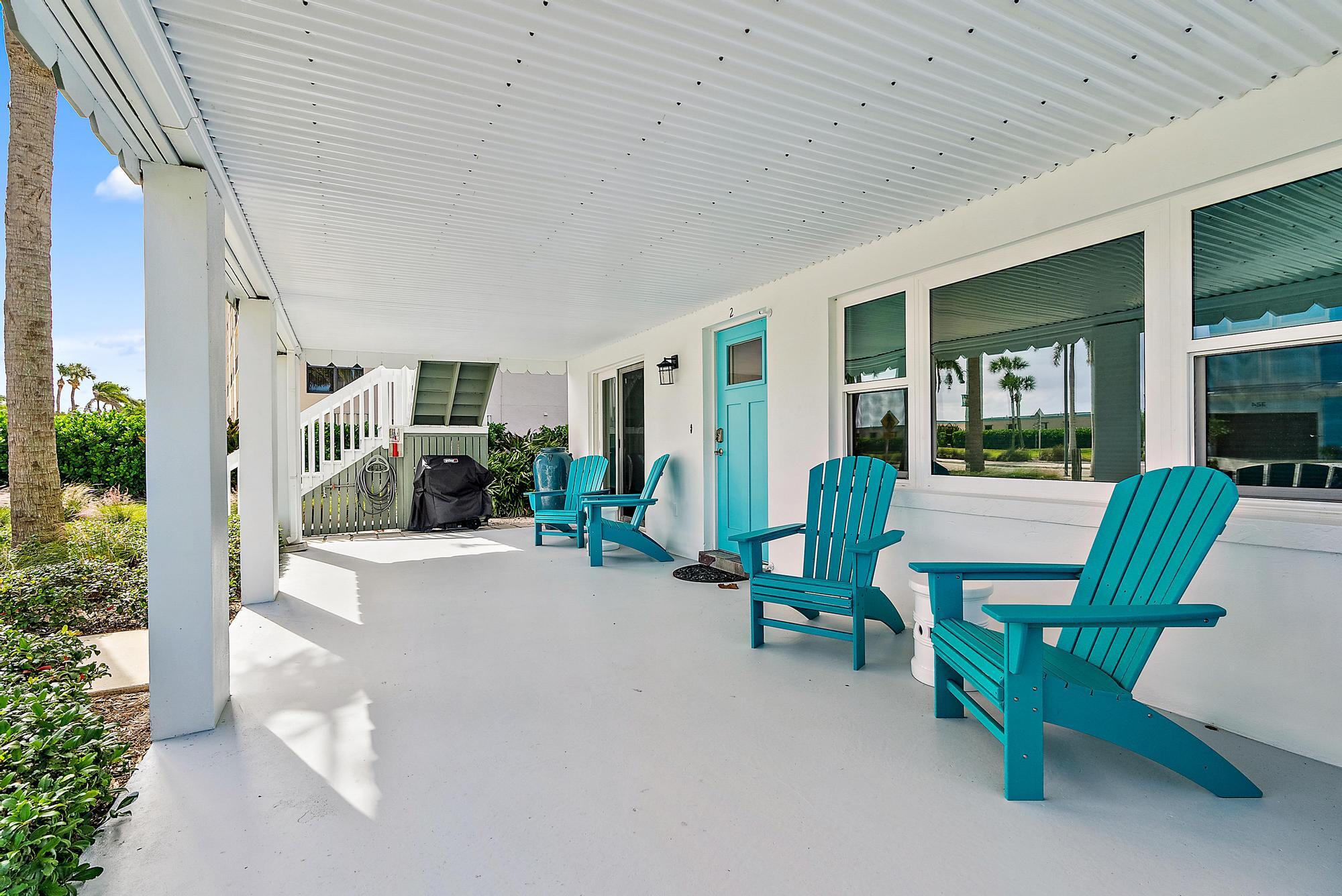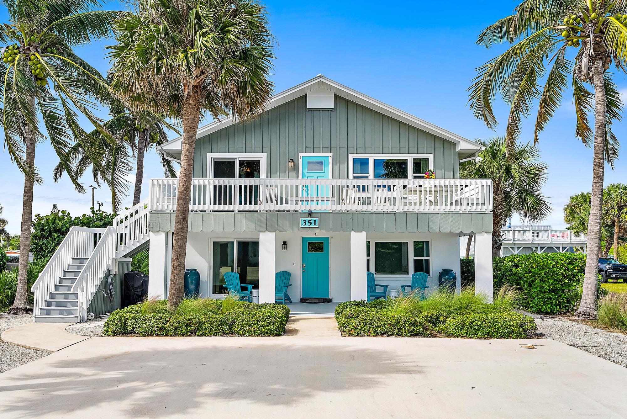 Beautiful duplex on South Hutchinson Island, across the street from the ocean! PRICED TO SELL! Near multi million dollar homes. Each unit is turnkey/ beautifully furnished & has been renovated with new kitchens, new flooring, new interior doors & impact windows throughout. A metal roof was installed in 2022. Large upper exterior deck for entertaining & enjoying the warm ocean breezes. Bottom unit features a spacious exterior front patio. Exterior storage shed for bicycles, beach chairs, etc. Incredible investment opportunity--live in one unit & rent the other or rent both! Perfect for short or long-term tenants. 3 blocks to the hub of island activity with restaurants, Ft. Pierce Jetty Park & entertainment. Located on South Hutchinson Island with 21 miles of uncrowded & unspoiled beaches.