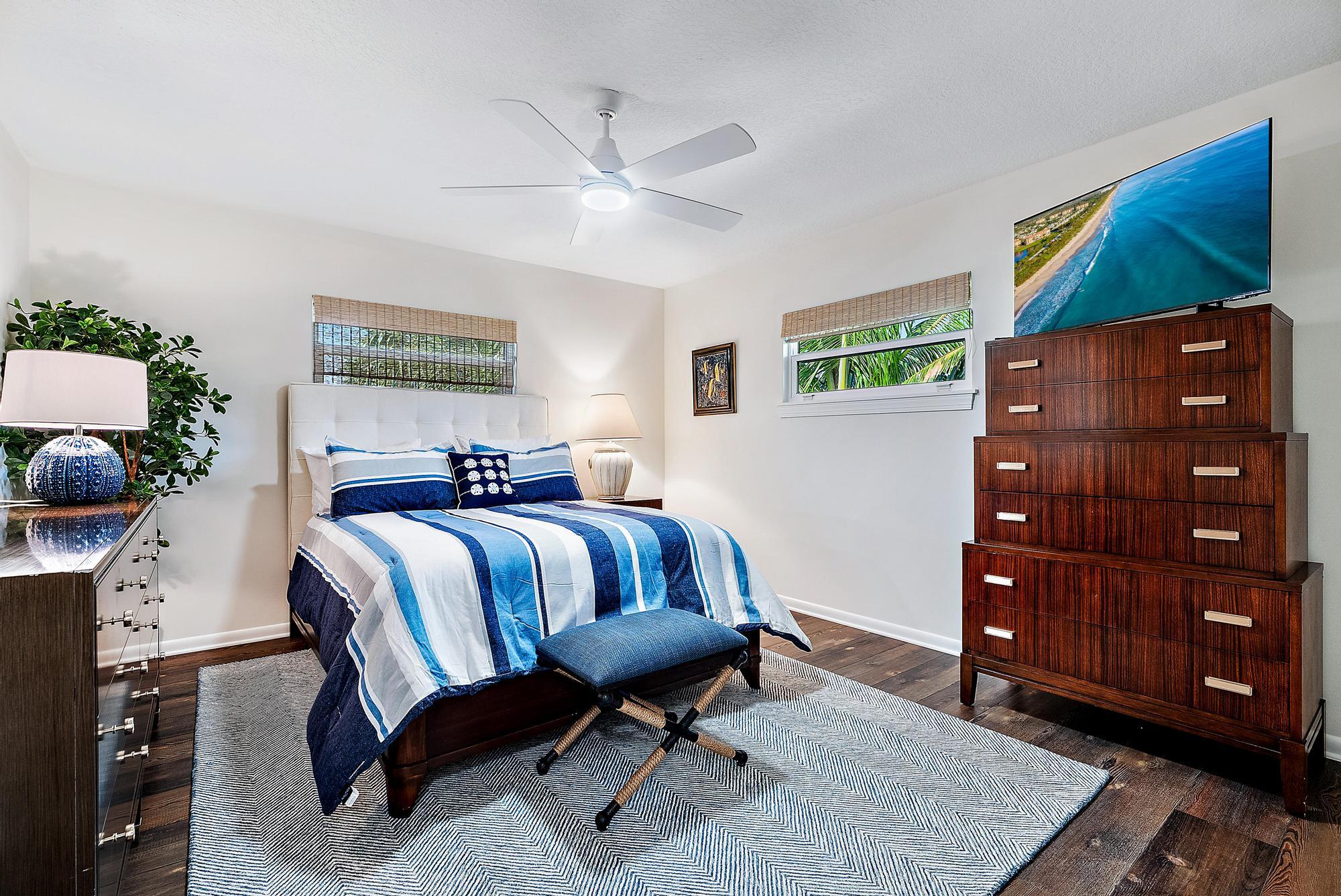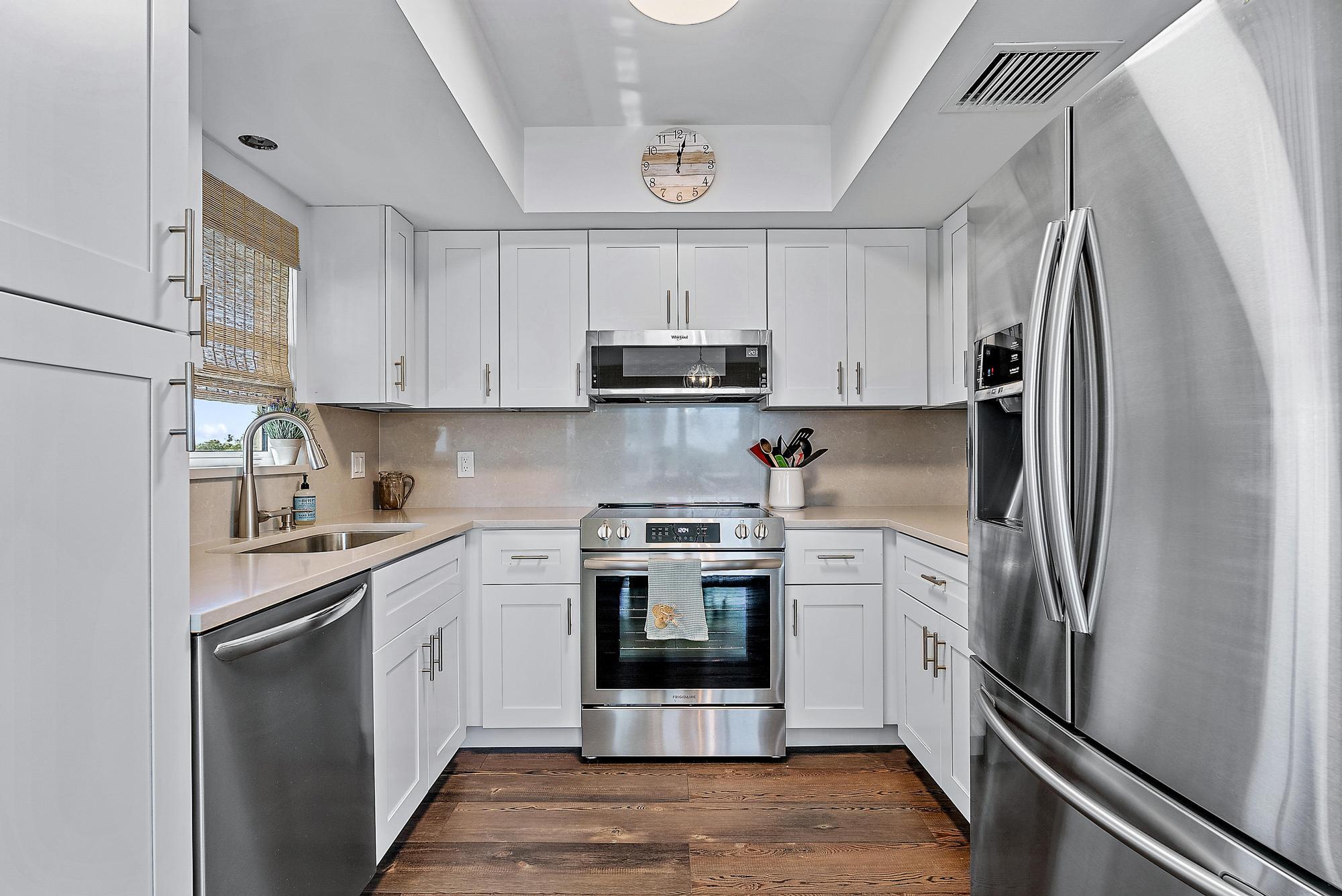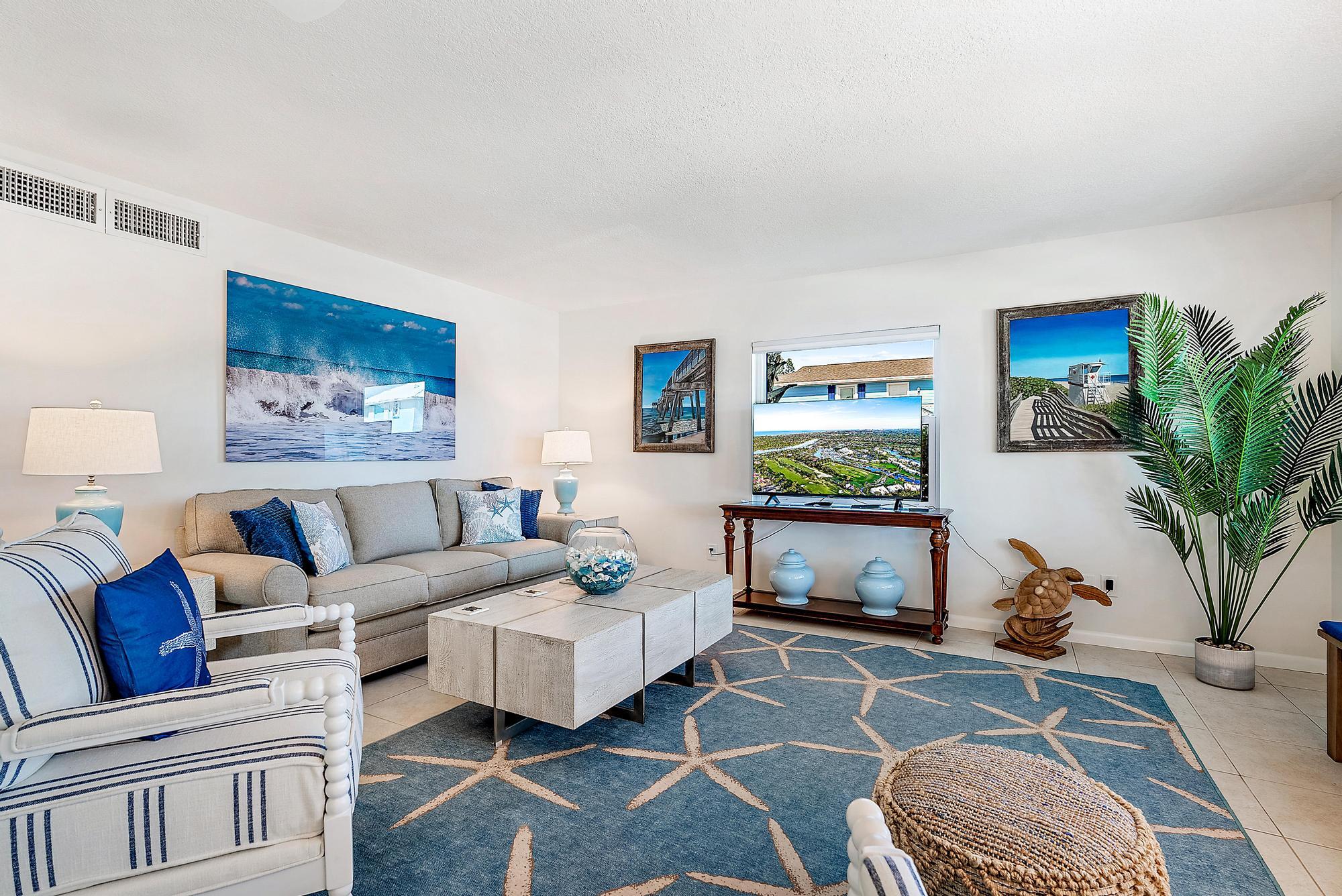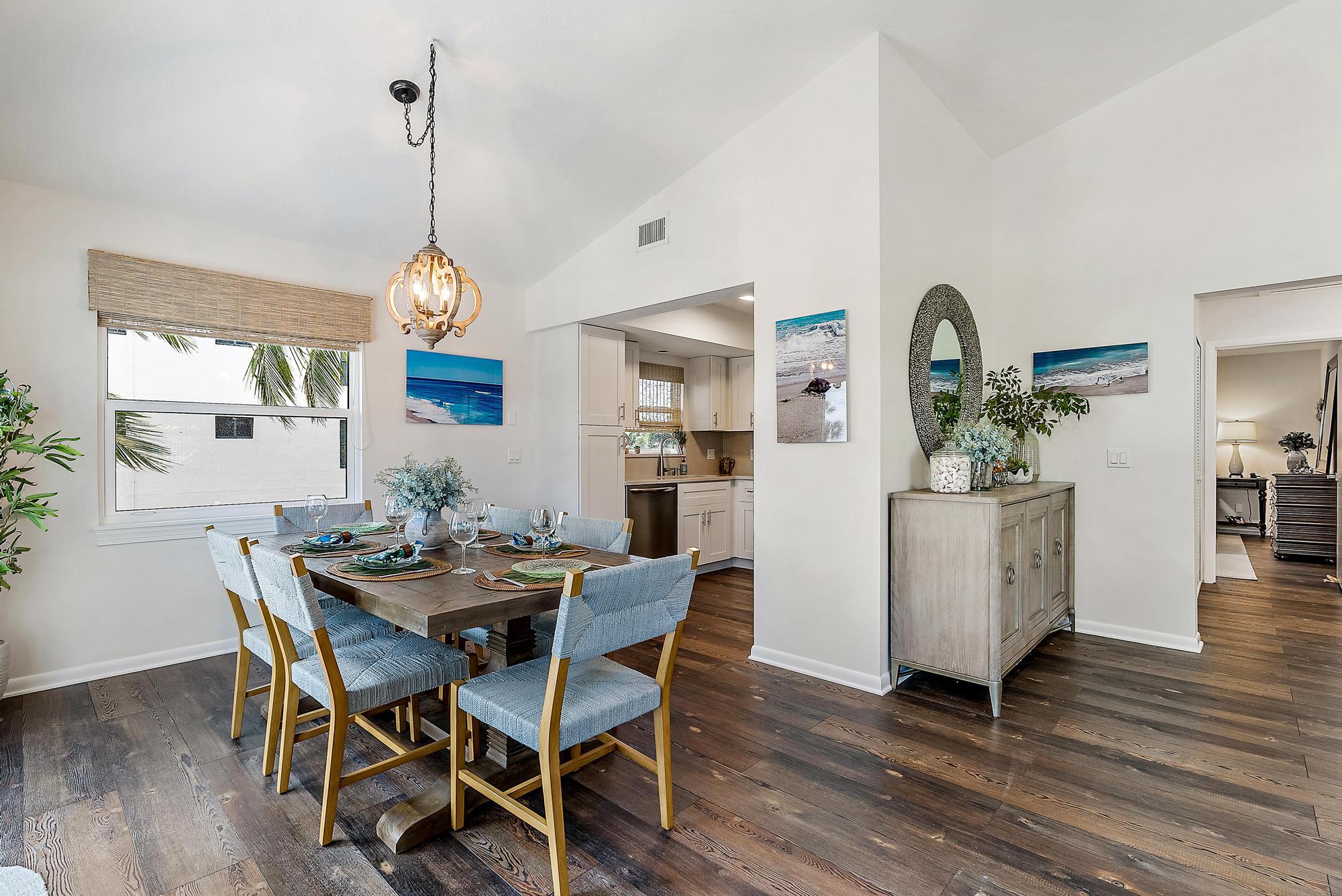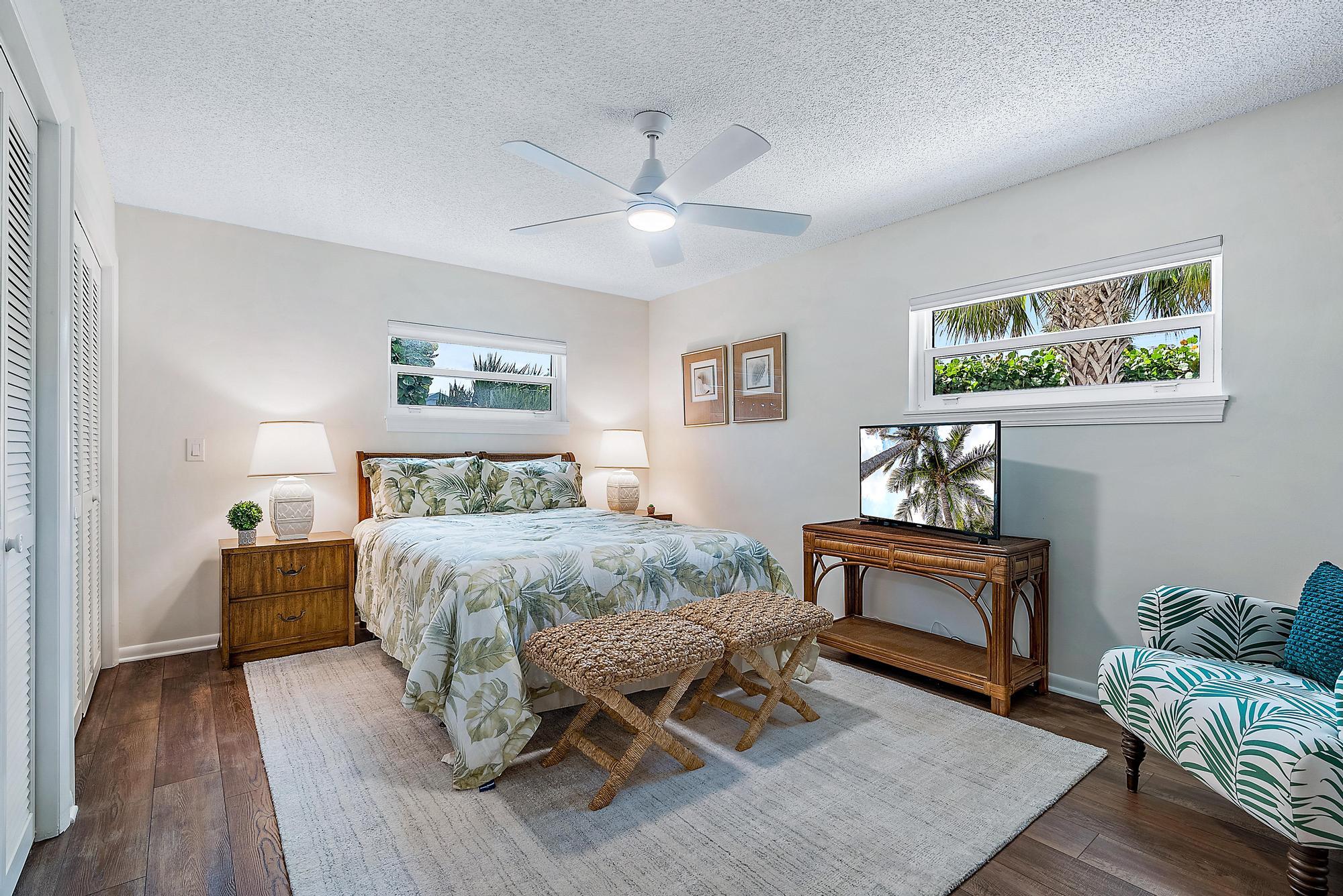 Beautiful duplex on South Hutchinson Island, across the street from the ocean! PRICED TO SELL! Near multi million dollar homes. Each unit is turnkey/ beautifully furnished & has been renovated with new kitchens, new flooring, new interior doors & impact windows throughout. A metal roof was installed in 2022. Large upper exterior deck for entertaining & enjoying the warm ocean breezes. Bottom unit features a spacious exterior front patio. Exterior storage shed for bicycles, beach chairs, etc. Incredible investment opportunity--live in one unit & rent the other or rent both! Perfect for short or long-term tenants. 3 blocks to the hub of island activity with restaurants, Ft. Pierce Jetty Park & entertainment. Located on South Hutchinson Island with 21 miles of uncrowded & unspoiled beaches.